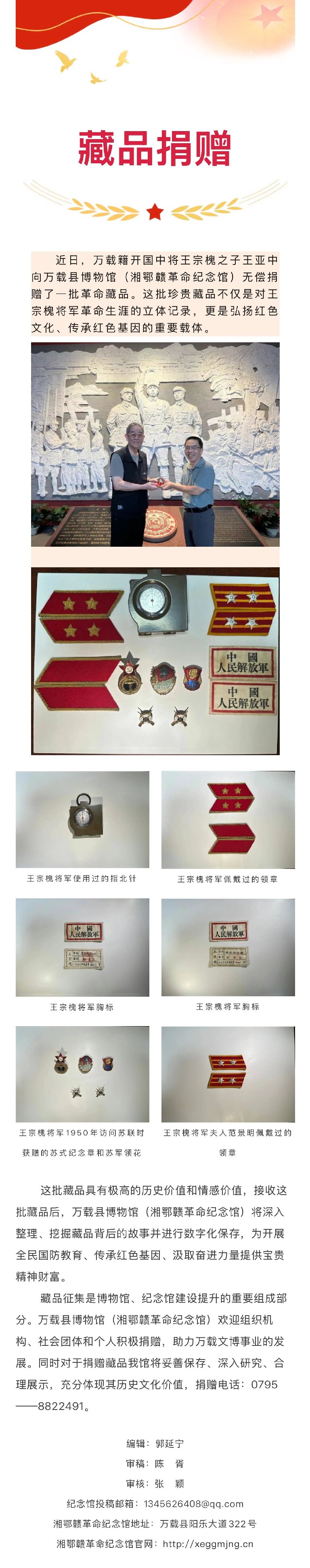 王宗槐将军之子王亚中向我馆捐赠革命藏品